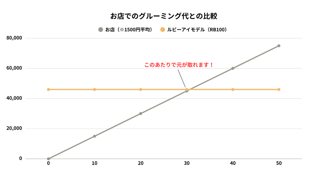 週1回のグルーミングなら約半年~1年で回収できます。